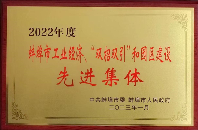 蚌埠市工業(yè)經(jīng)濟、“雙招雙引”和園區(qū)建設先進集體