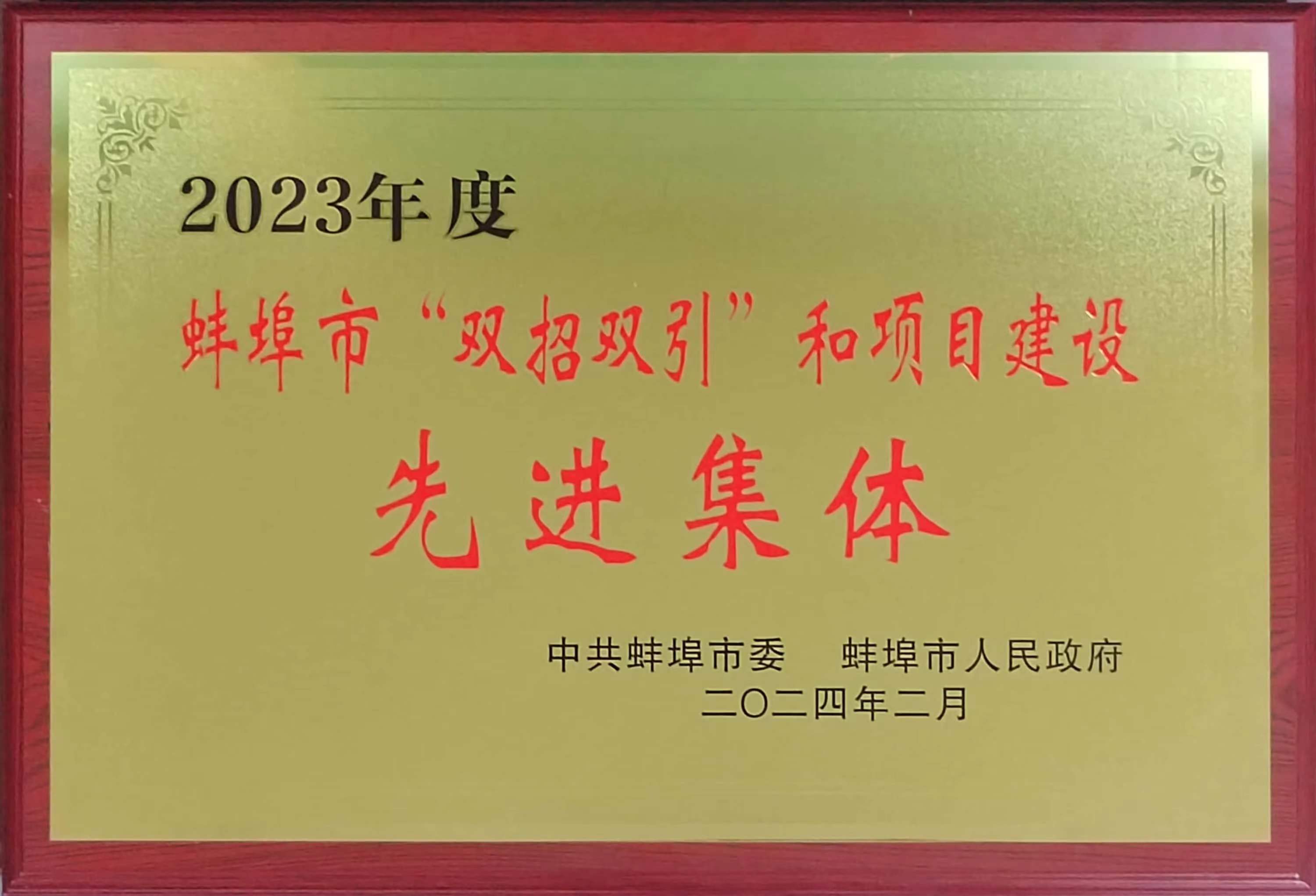 蚌埠市“雙招雙引”和項目建設先進集體